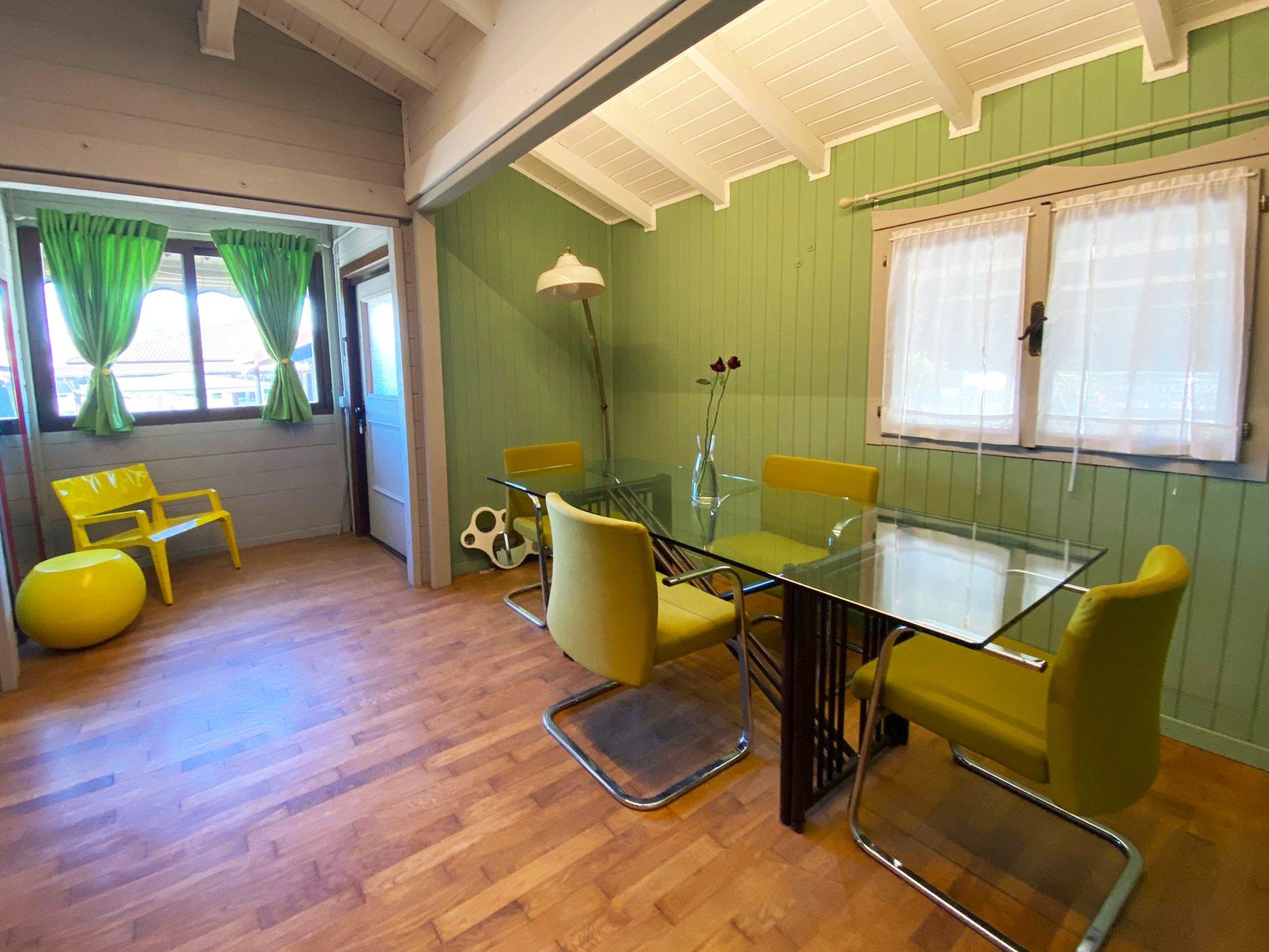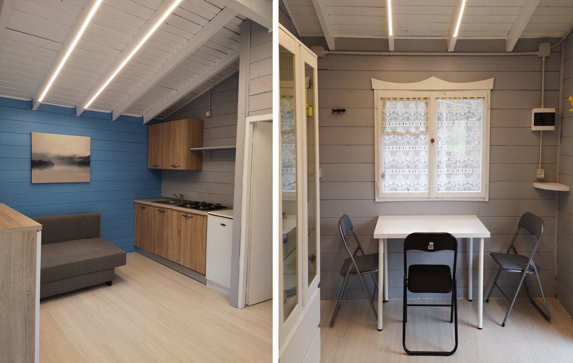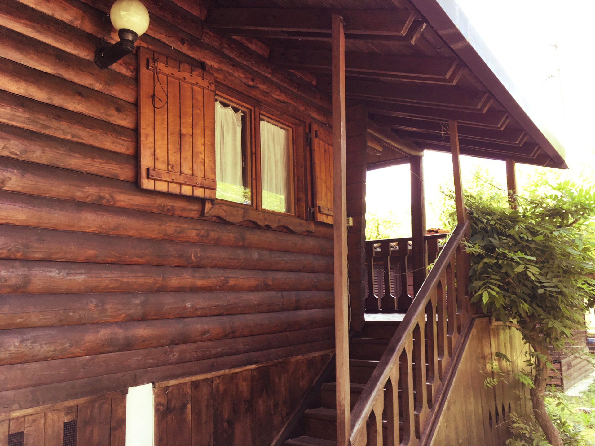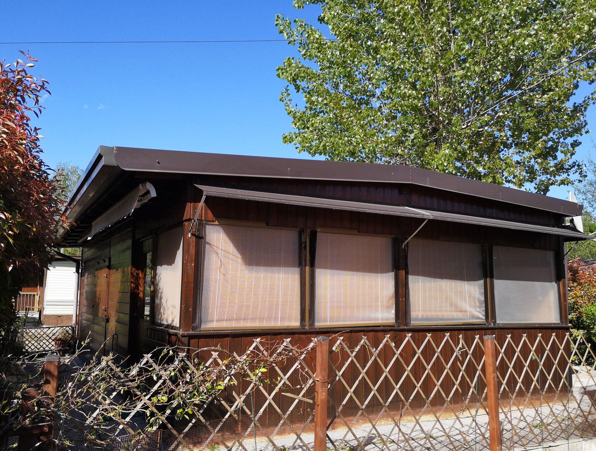 Wooden cottage with equipped kitchen, 2 double bedrooms, one with an additional single bed, bathroom with shower. The villa has an equipped veranda and a lovely private garden. It is equipped with heating and air conditioning.